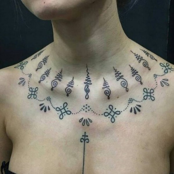 欧美锁骨纹身图 多款简单线条纹身素描欧美锁骨纹身图案