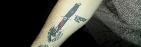 手臂纹身素材 男生手臂上眼睛和匕首纹身图片