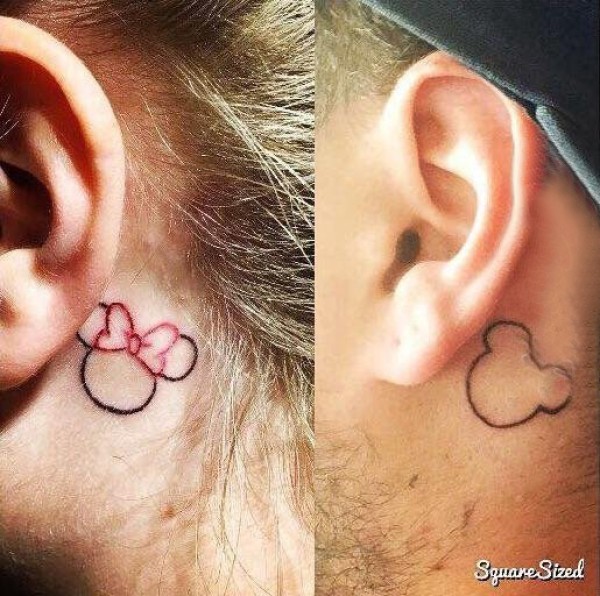 情侣小清新纹身 情侣耳后简单的迪士尼纹身图片