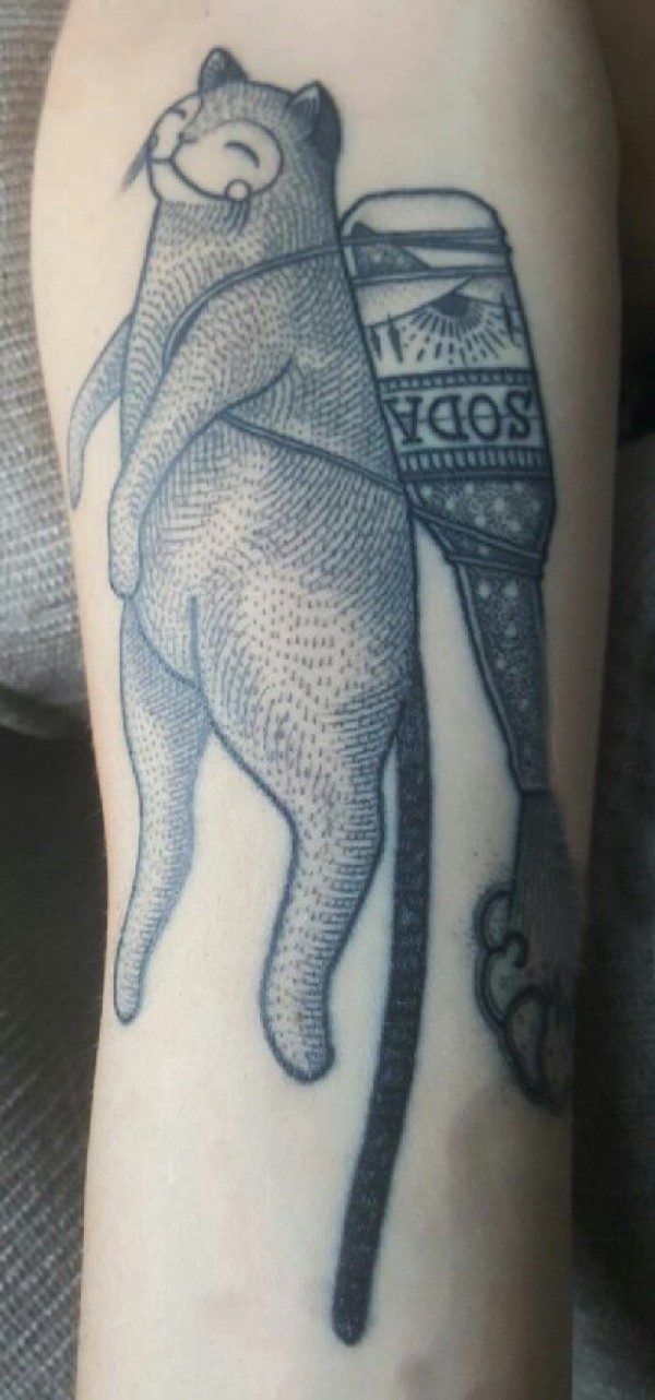 猫咪纹身简单 女生手臂上黑色的猫咪纹身图片