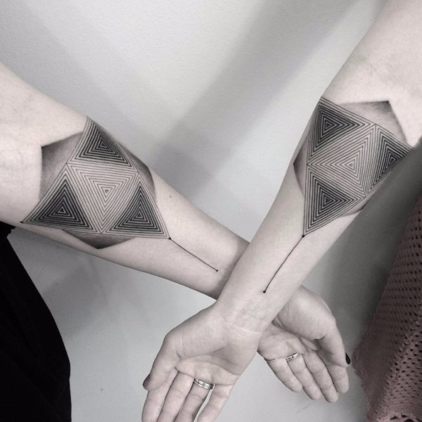 闺蜜纹身 闺蜜手臂上黑色的几何纹身图片