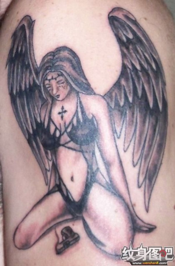 长着翅膀,穿着比基尼的美丽天使纹身图案