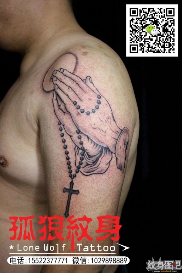 宝坻纹身 大臂佛手纹身 孤狼纹身工作室作品 天津