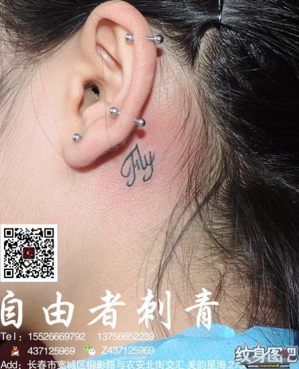 多款女生耳后黑色线条素描文艺小清新小图案纹身图案