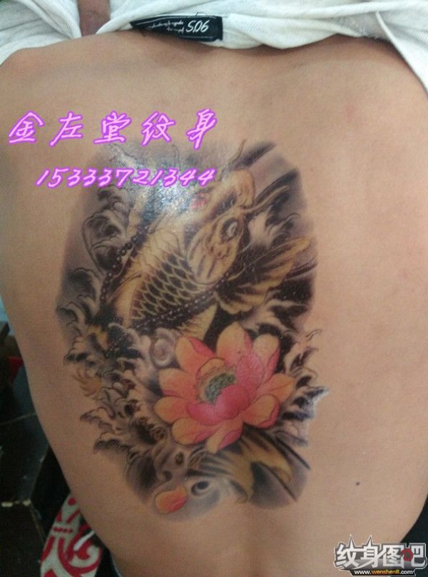 莲花鱼纹身安阳水冶纹身金左堂纹身15333721344 盖疤修改纹身