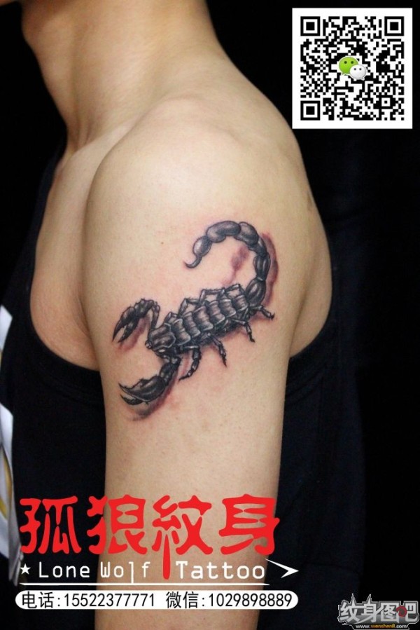 宝坻纹身 男人大臂精细蝎子纹身 宝坻孤狼纹身工作室作品 天津纹身