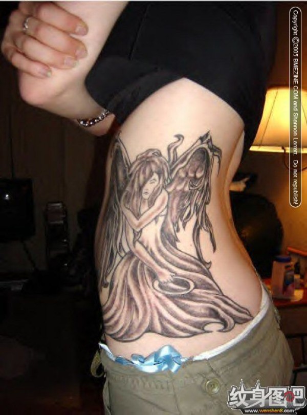分享一款腰部时尚性感的蝶恋花纹身图案_腰部纹身图案大全_纹身图吧