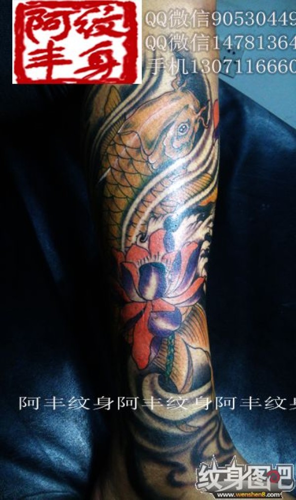 传统鲤鱼花小腿纹身_腿部纹身图案大全_纹身图吧
