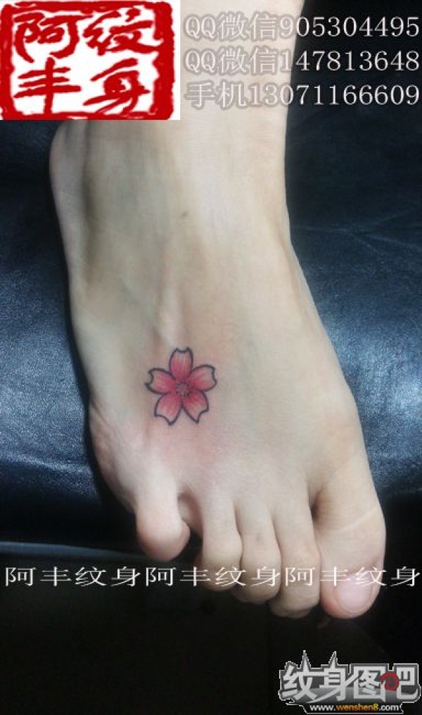 脚上小樱花纹身图片