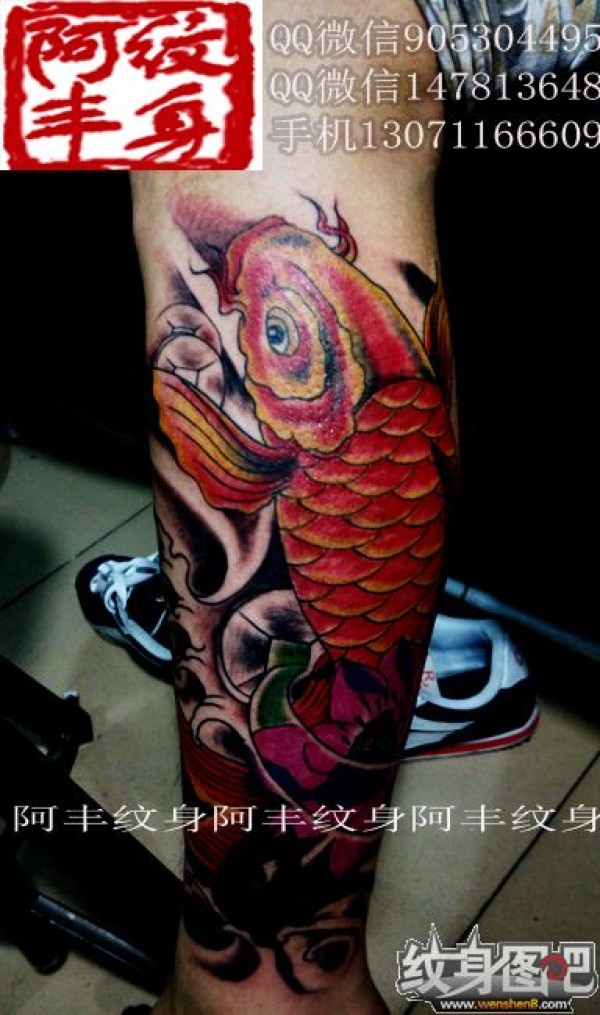 传统鲤鱼花小腿纹身_腿部纹身图案大全_纹身图吧