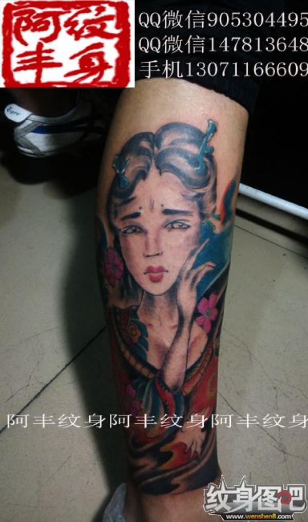 传统花腿纹身--18张传统风格的大花腿纹身图案作品
