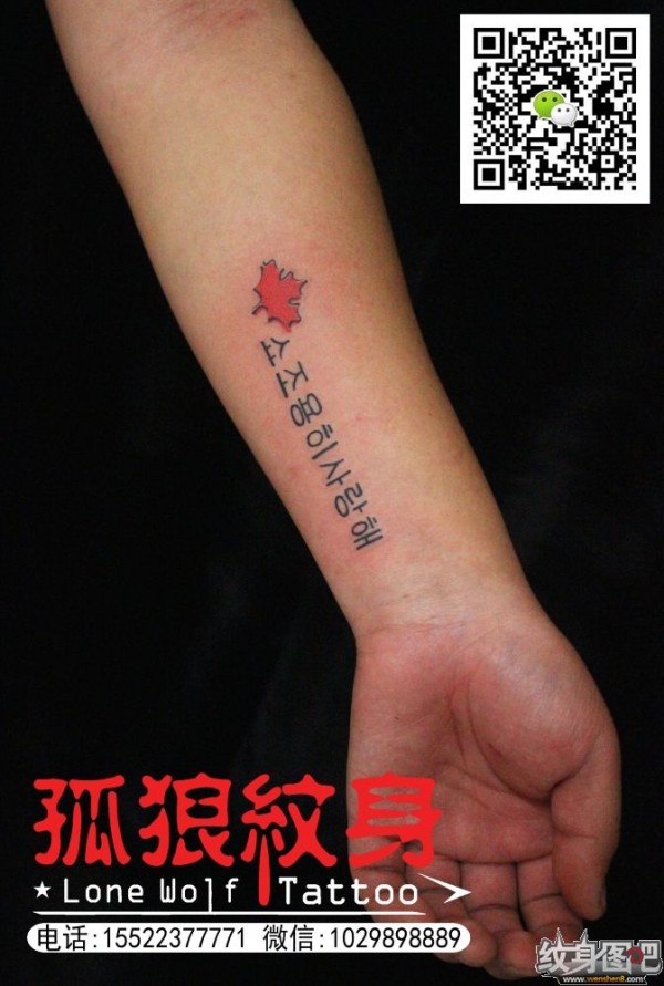 宝坻纹身 男士小臂韩文纹身 宝坻孤狼纹身工作室作品 天津纹身