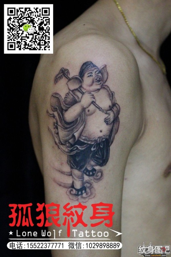 宝坻纹身 男士大臂个性猪八戒纹身 宝坻孤狼纹身工作室作品 天津纹身