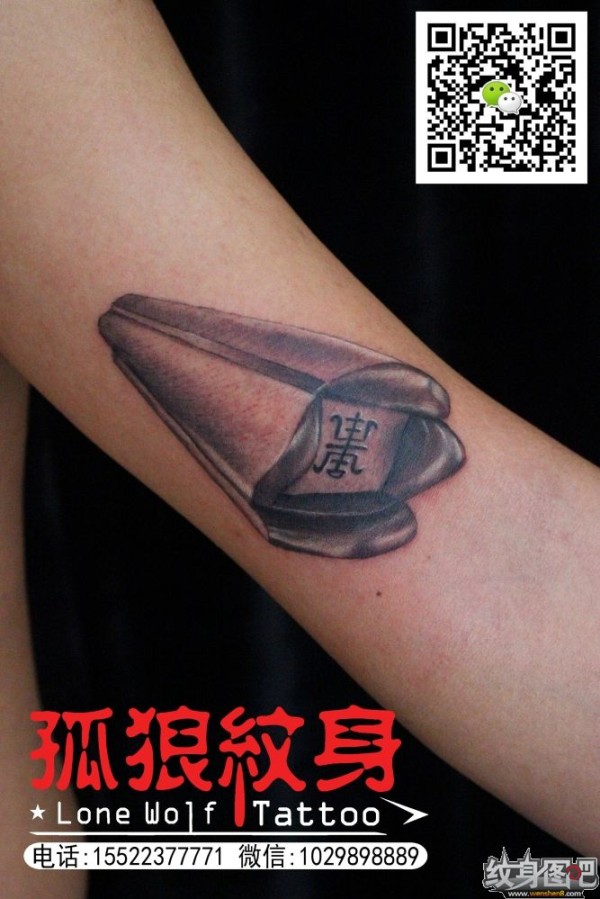 宝坻纹身 男士大臂个性棺材纹身 宝坻孤狼纹身工作室作品 天津纹身