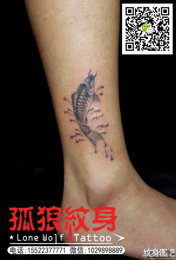 宝坻纹身 美女脚踝鱼小清新纹身 宝坻孤狼纹身工作室作品 天津纹身
