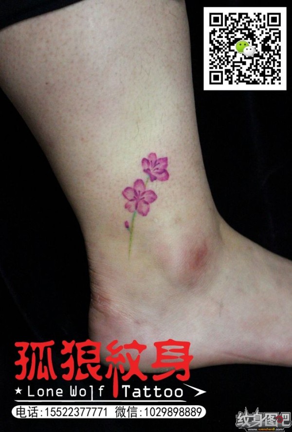 宝坻纹身 美女脚踝花小清新纹身 宝坻孤狼纹身工作室作品 天津纹身