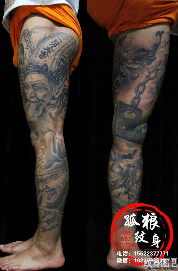 宝坻纹身 男士黑白无常包整腿纹身 宝坻孤狼纹身工作室作品 天津纹身