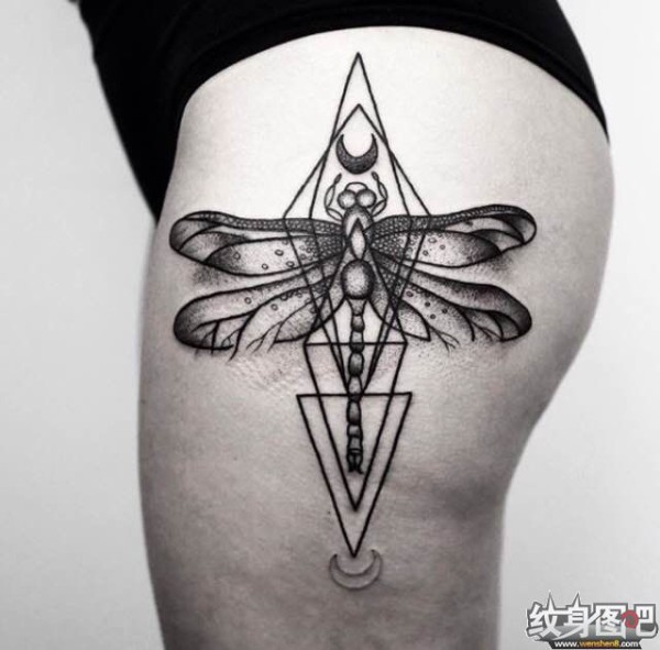 女生后腰纹身黑白灰风格抽象线条纹身图案