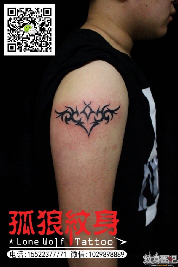 宝坻纹身 男士大臂图腾臂环纹身 宝坻孤狼纹身工作室作品 天津纹身