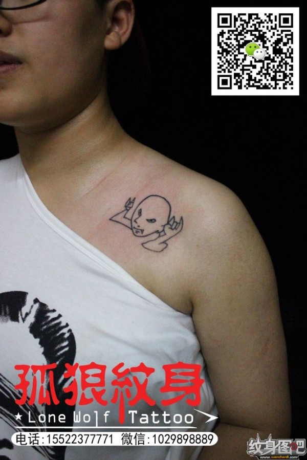 宝坻纹身 美女锁骨恶魔小清新纹身 宝坻孤狼纹身工作室作品 天津纹身