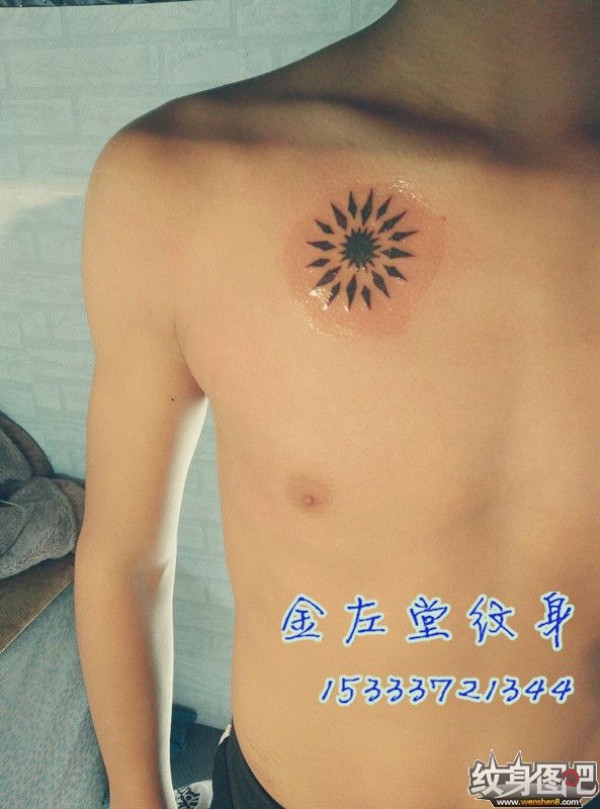 太阳图腾纹身安阳水冶纹身金左堂纹身工作室15333721344 盖疤修改纹身