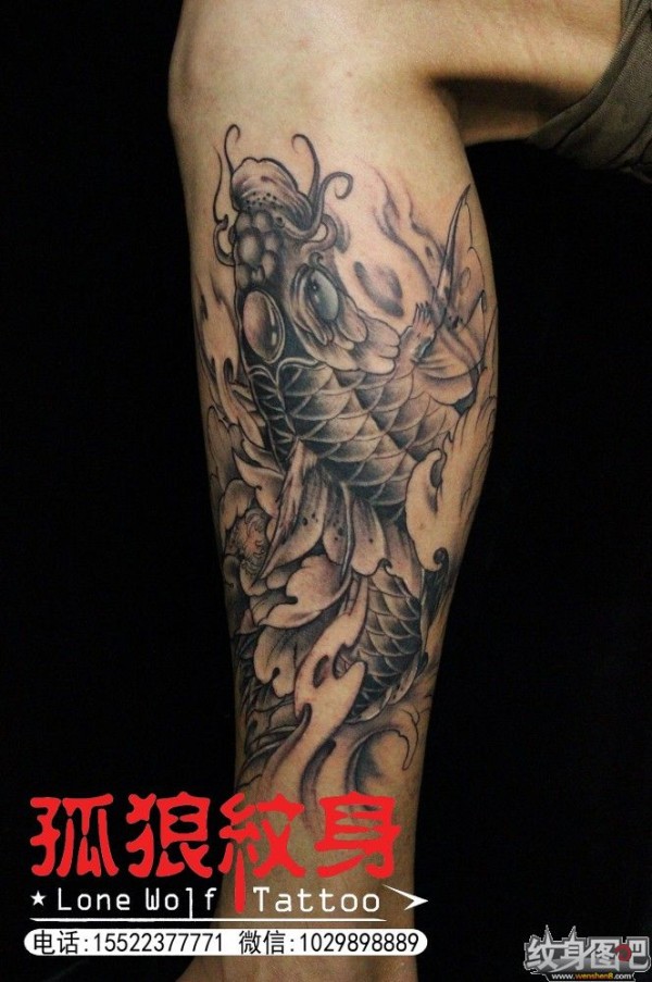 传统鲤鱼花小腿纹身_腿部纹身图案大全_纹身图吧