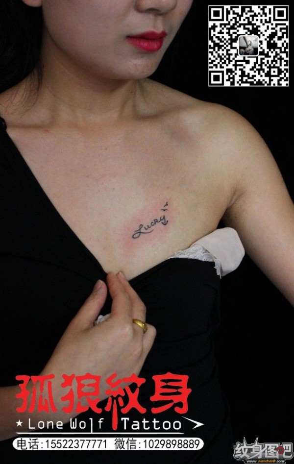 美女胸部英文纹身 宝坻孤狼纹身工作室作品 宝坻纹身 天津纹身 美女纹身 胸部纹身 英文纹身 小清新纹身