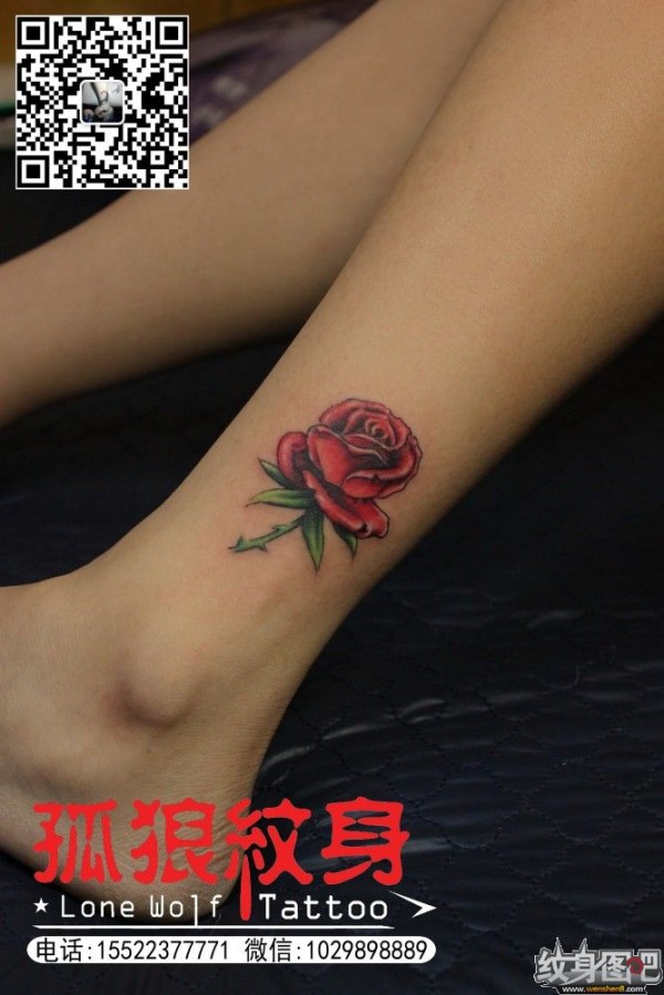 美女脚踝玫瑰花纹身 宝坻孤狼纹身工作室作品 宝坻纹身 天津纹身 孤狼纹身 脚踝纹身 性感纹身 美女纹身 玫瑰花纹身