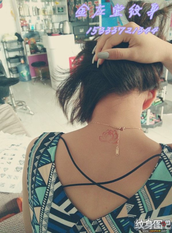 后颈部纹身小图--9张女生脖子后颈处的简约纹身图案