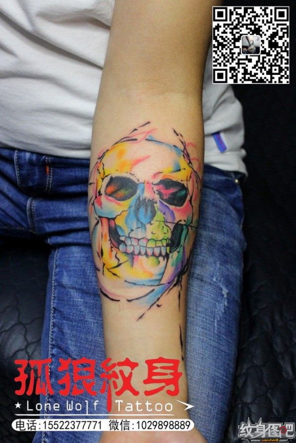 男士小臂水墨骷髅纹身 宝坻孤狼纹身工作室作品 宝坻纹身 天津纹身 骷髅纹身 孤狼纹身