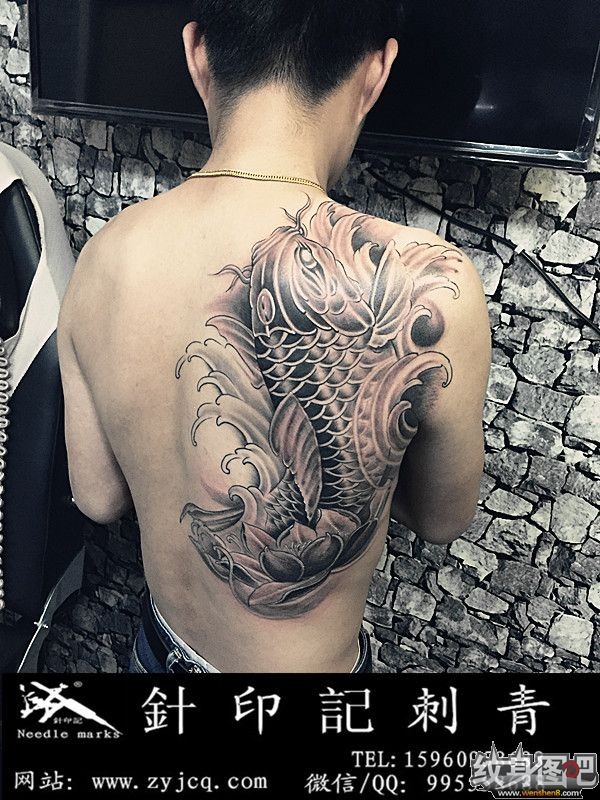 背部鲤鱼纹身-福建三明沙县针印记刺青胡宇纹身作品