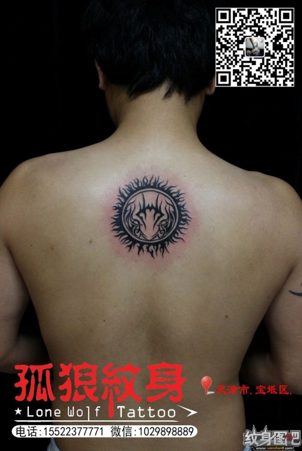 后背小图腾纹身 宝坻孤狼纹身工作室作品 宝坻纹身 孤狼纹身 天津纹身 后背纹身 图腾纹身
