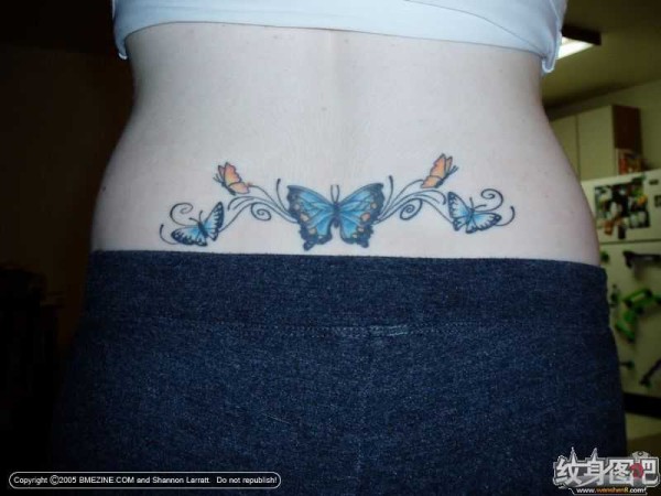 分享一款腰部时尚性感的蝶恋花纹身图案_腰部纹身图案大全_纹身图吧