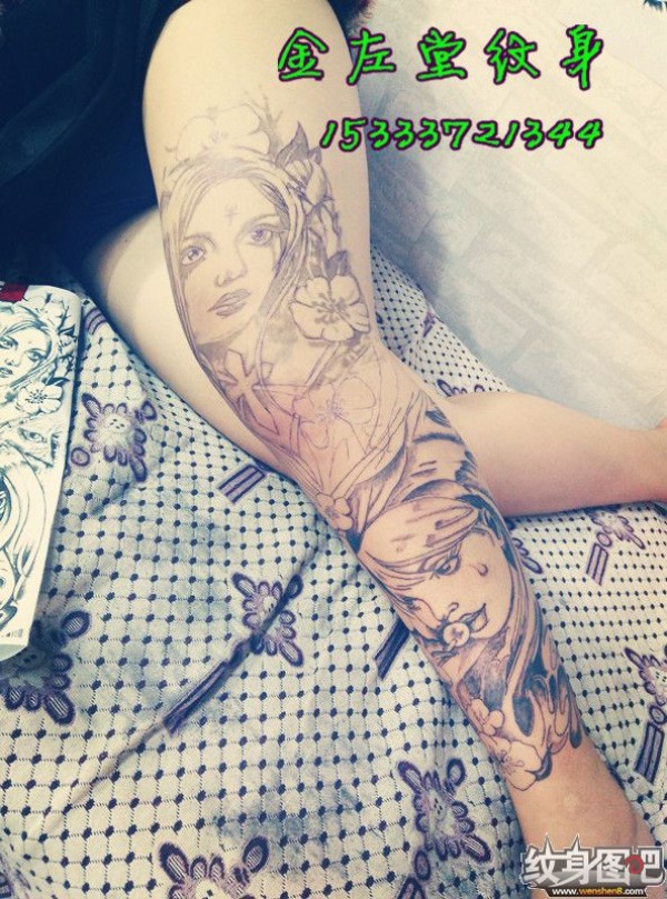 花腿美女纹身 金左堂纹身 盖疤痕 修改纹身 安阳水冶纹身