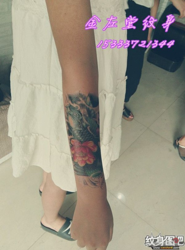 莲花鱼纹身安阳水冶纹身金左堂纹身15333721344 盖疤痕 修改纹身
