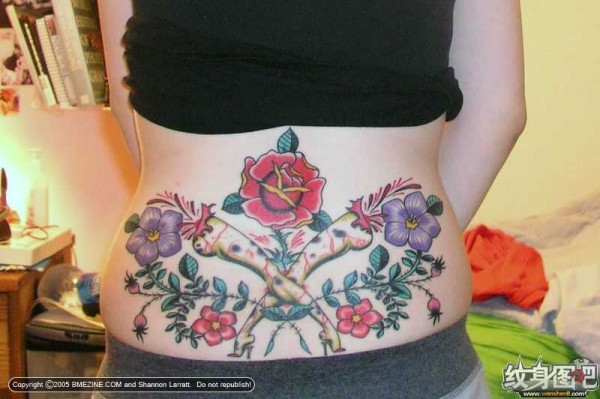 分享一款腰部时尚性感的蝶恋花纹身图案_腰部纹身图案大全_纹身图吧
