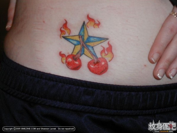 分享一款腰部时尚性感的蝶恋花纹身图案_腰部纹身图案大全_纹身图吧