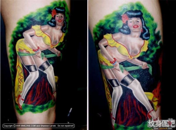 传统花腿纹身--18张传统风格的大花腿纹身图案作品