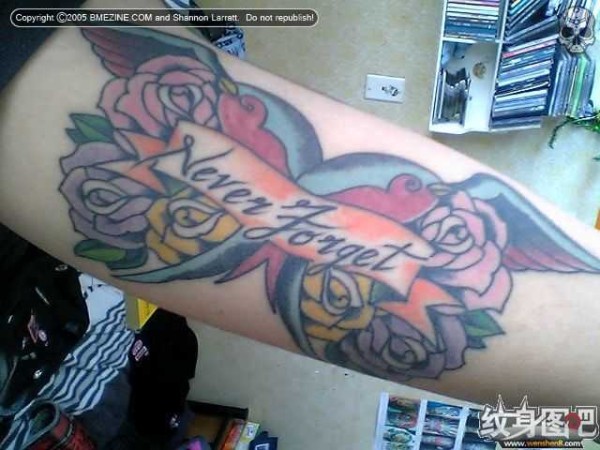 玫瑰花和鸟纹身