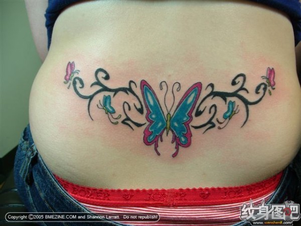 分享一款腰部时尚性感的蝶恋花纹身图案_腰部纹身图案大全_纹身图吧