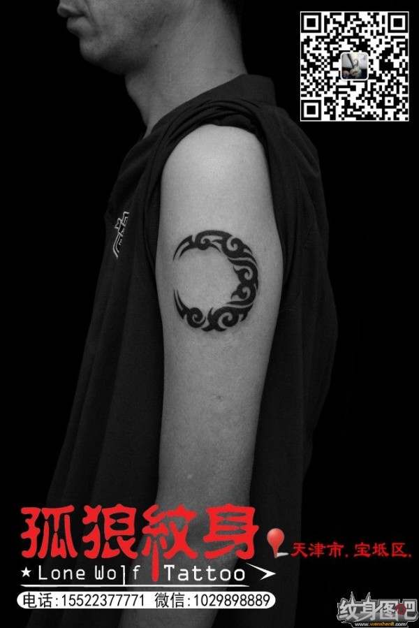 宝坻纹身 大臂月亮图腾纹身 孤狼纹身 天津纹身