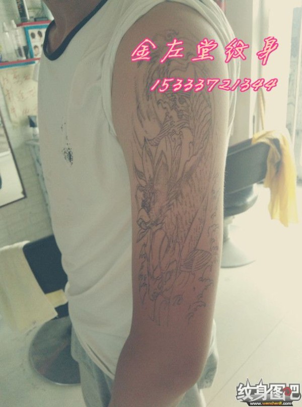 鱼 纹身安阳纹身 水冶纹身金左堂纹身工作室15333721344盖疤修改纹身