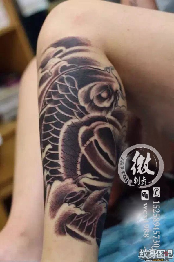 腿部鳌鱼纹身图案_腿部纹身图案大全_纹身图吧