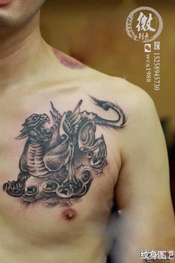 纹身图案胸部男 简洁大方的男生胸部纹身图案