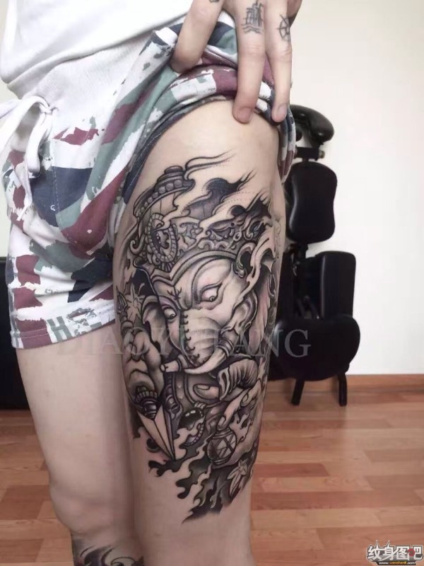 小腿上一款大象纹身图案_腿部纹身图案大全_纹身图吧