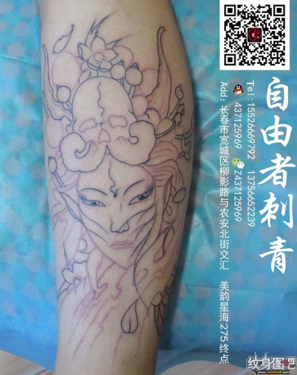 传统花腿纹身--18张传统风格的大花腿纹身图案作品