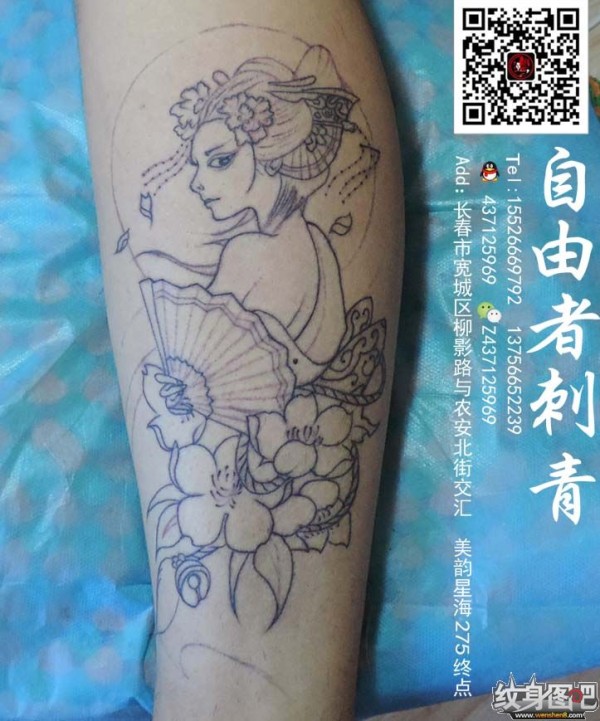 传统花腿纹身--18张传统风格的大花腿纹身图案作品