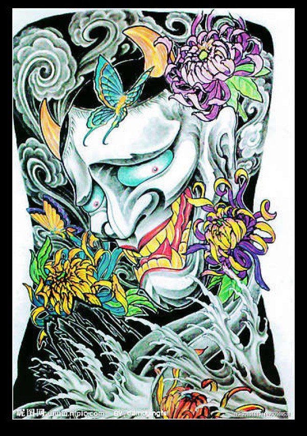 能面万媚纹身手稿_52张日式能剧面具纹身手稿图案素材欣赏