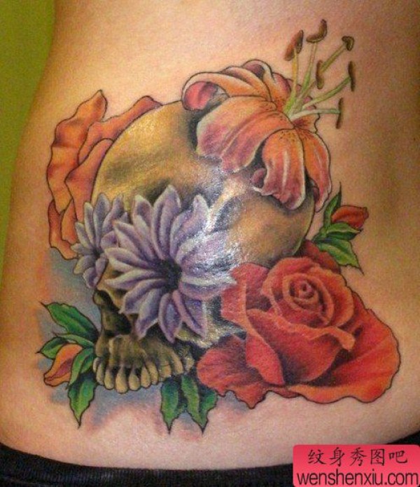 欧美超漂亮的玫瑰花 百合花纹身图案