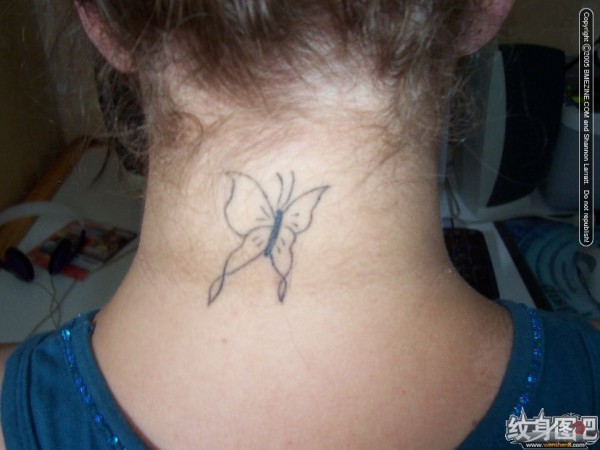 脖子上的简约蝴蝶纹身